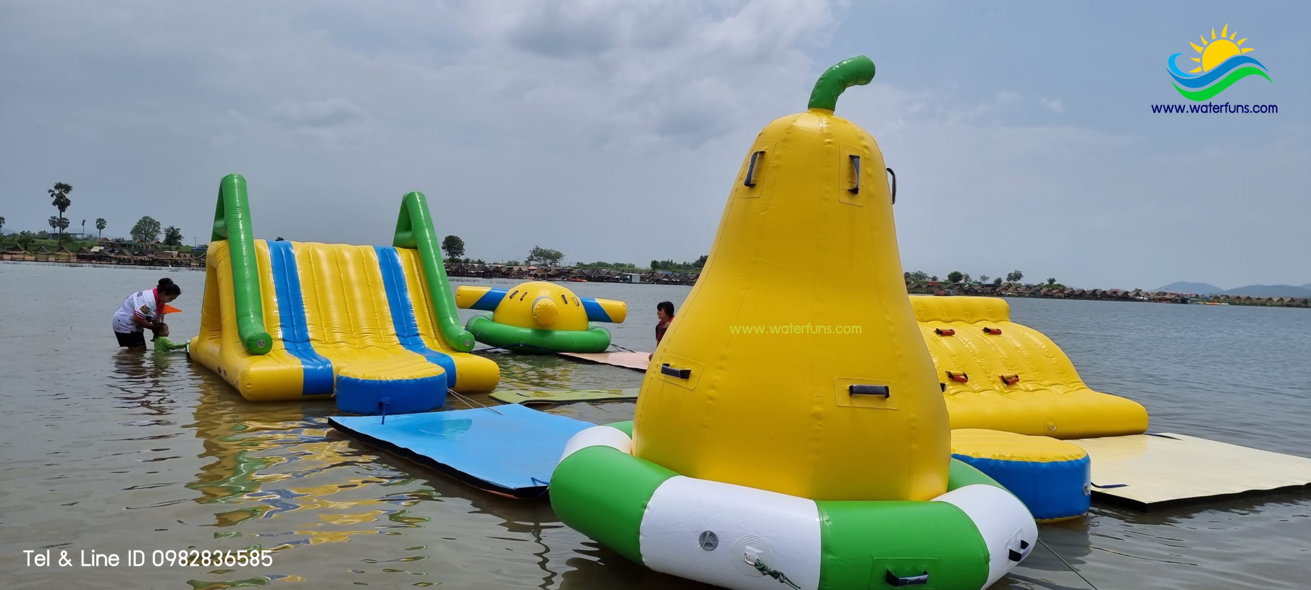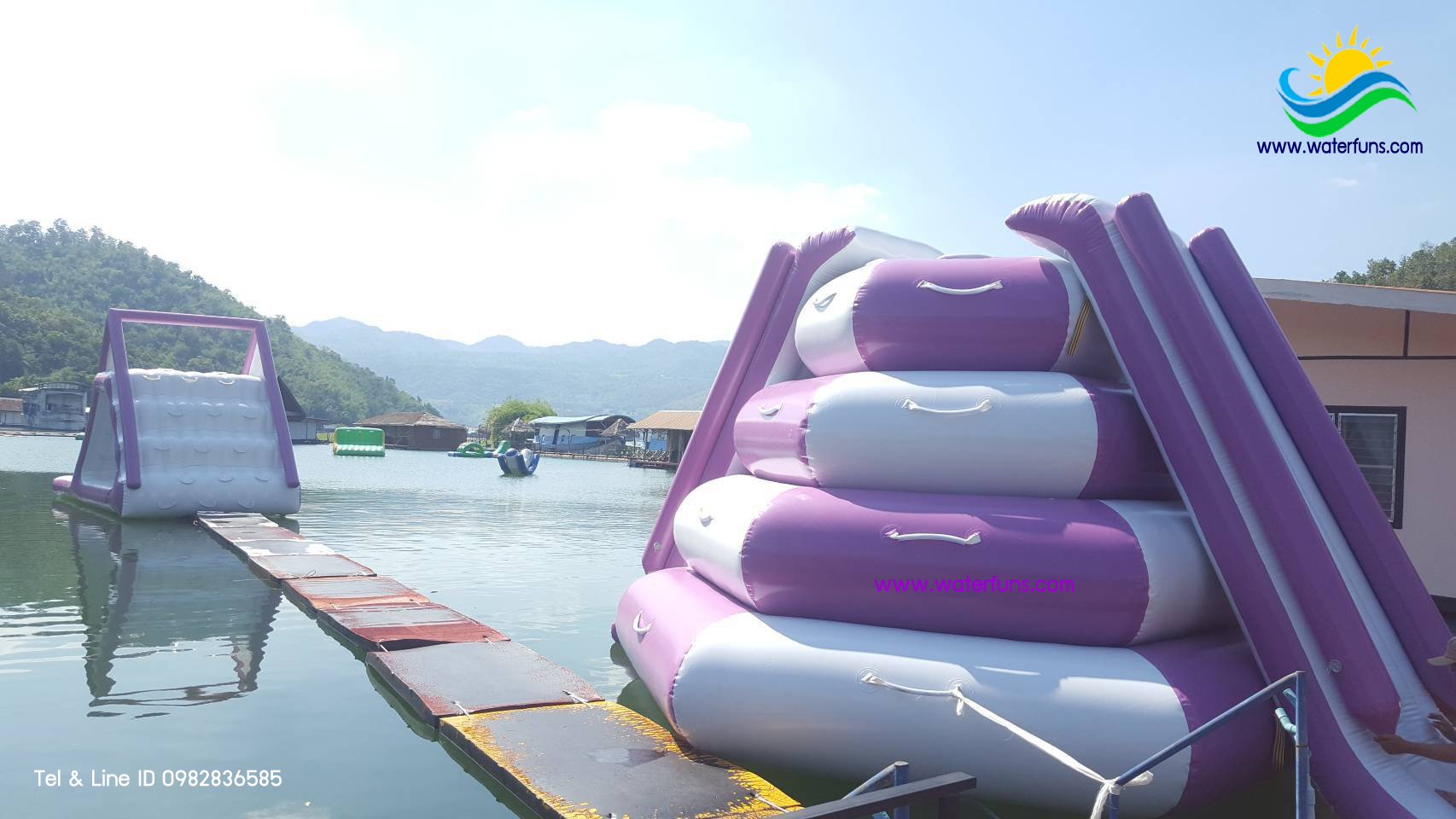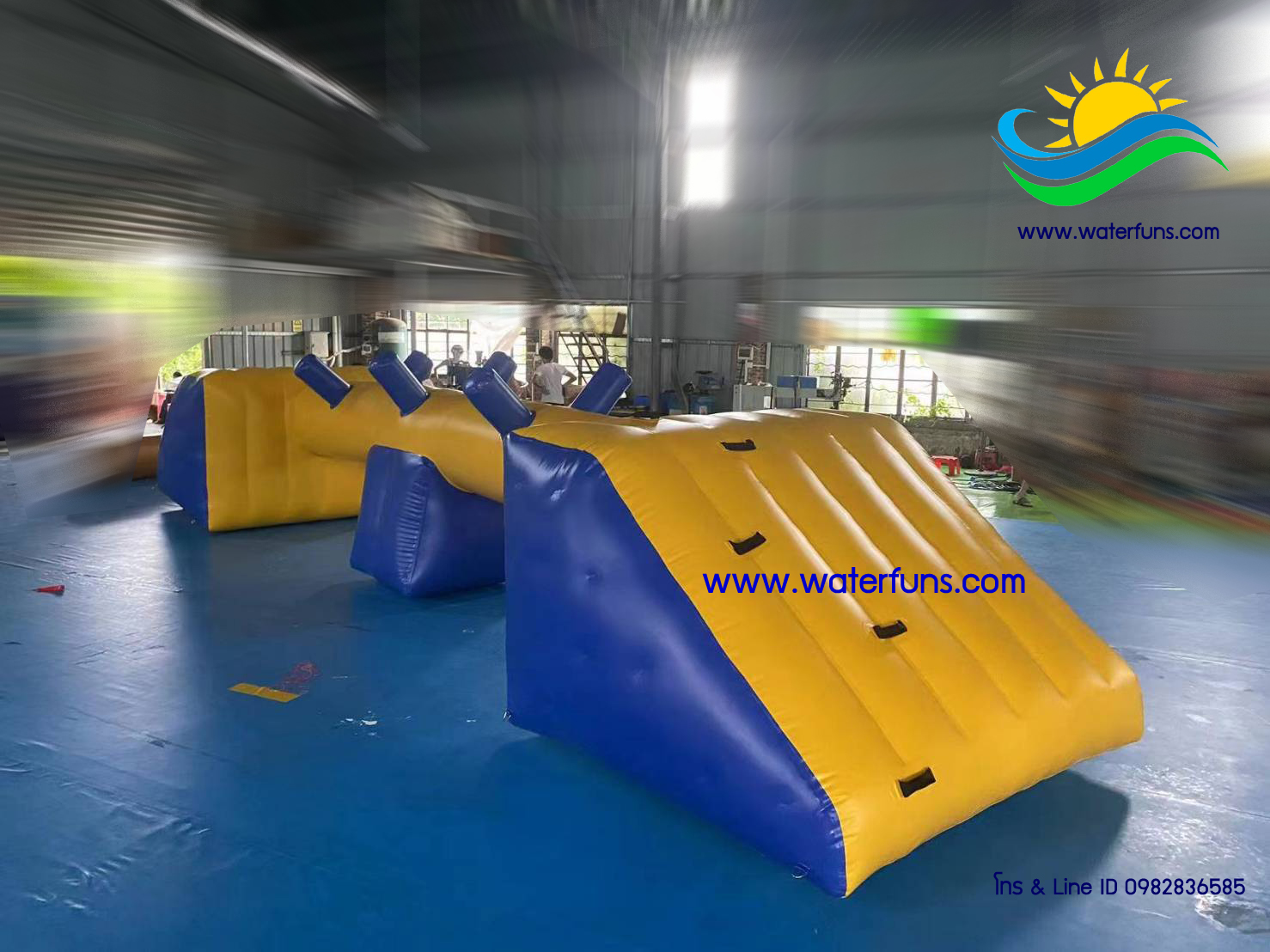 เครื่องเล่น สวนน้ำ เป่าลม สำเร็จรูป ชนิดเครื่องเล่นเดี่ยว สามารถนำมาต่อกันเป็นชุดได้