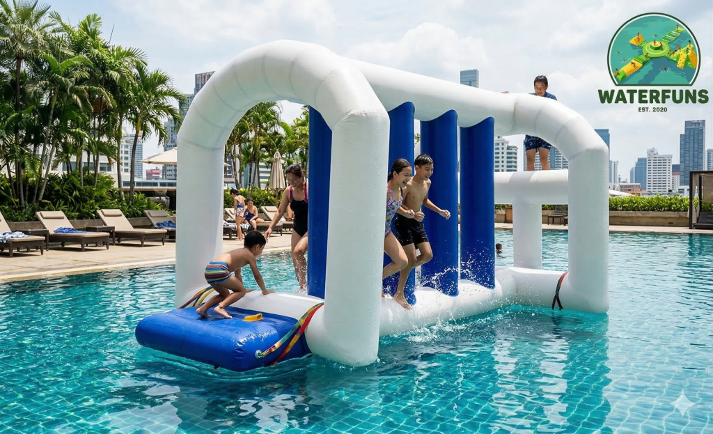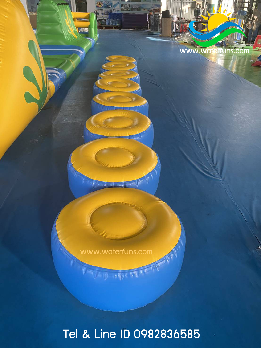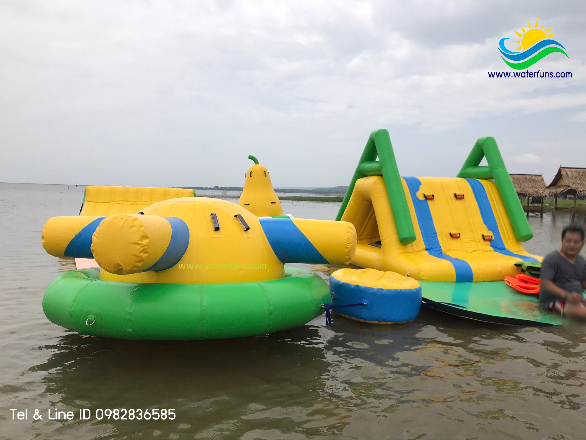 เครื่องเล่น สวนน้ำ เป่าลม สำเร็จรูป ชนิดเครื่องเล่นเดี่ยว สามารถนำมาต่อกันเป็นชุดได้